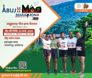 The Narad News 24,,,,,,रायपुर,19 फरवरी 2025// अबूझमाड़ पीस हाफ मैराथन 2025 शांति, फिटनेस, सामुदायिक भावना और बस्तर की अछूती सुंदरता का उत्सव मनाने के लिए आयोजित की जा रही है। इस मैराथन की तैयारियां जोरों पर हैं, जिसमें 5,000 से अधिक प्रतिभागी हिस्सा लेंगे। स्थानीय प्रतिभाओं को मंच प्रदान करने, शारीरिक स्वास्थ्य को बढ़ावा देने और क्षेत्र की प्राकृतिक सुंदरता को उजागर करने के उद्देश्य से अबूझमाड़ पीस हाफ मैराथन 2025 का आयोजन 2 मार्च को नारायणपुर में किया जाएगा। बड़ी संख्या में प्रतिभागियों के पंजीकरण के साथ, यह मैराथन केवल एक दौड़ नहीं बल्कि आशा, एकता और बदलाव का प्रतीक बन चुकी है।
