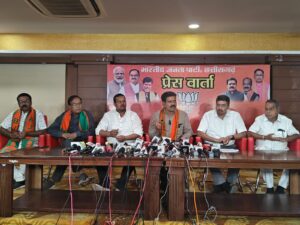 इस दौरान पत्रकार वार्ता में प्रदेश मीडिया सह प्रभारी अनुराग अग्रवाल, प्रदेश प्रवक्ता दीपक म्हस्के, नलिनीश ठोकने, और ओबीसी मोर्चा के जिलाध्यक्ष सुनील चैधरी मौजूद थे।