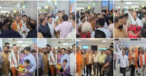 रायपुर सांसद बृजमोहन अग्रवाल 18वीं लोकसभा के पहले सत्र में भाग लेने के बाद शनिवार को वापस रायपुर पहुंचे। यहां स्वामी विवेकानंद विमानतल पर पार्टी कार्यकर्ताओं ने उनका जोरदार स्वागत किया।