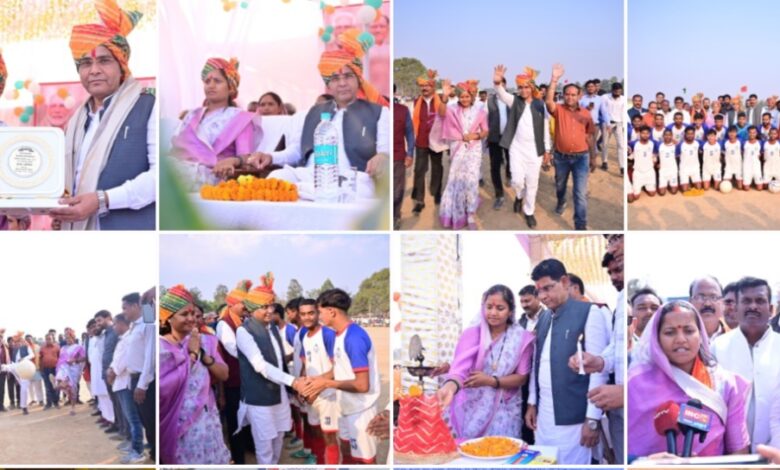 फुटबॉल प्रतियोगिता के समापन मे शामिल हुए केबिनेट मंत्री टंकराम वर्मा व लक्ष्मी राजवाड़े