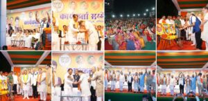 कार्यकर्ता सम्मेलन को संबोधित करते हुए मुख्यमंत्री विष्णु देव साय ने कहा कि देवतुल्य कार्यकर्ता अपने कर्तव्य से कठोर परिश्रम से और पूरी निष्ठा से चुनाव में भाजपा प्रत्याशी सुनील सोनी को जिताने के लिए जुट गए है। उन्होंने कहा कि छत्तीसगढ़ राज्य निर्माण भाजपा ने किया और राज्य का विकास भजपा की सरकार ही कर रही है। लेकिन कांग्रेस पार्टी ने 2018 में जनता से झूठे वादे करके सरकार बनाई और पिछले पांच वर्ष कांग्रेस ने सिर्फ लूटने का कार्य किया। कांग्रेस छत्तीसगढ़ के जनता के जेब से पैसा निकालने का कार्य करती रही। वहीं भाजपा की सरकार बनते ही हमारी सरकार ने जनता के जेब में पैसा डालने का काम किया है। त्यौहार के पहले देश की राष्ट्रपति द्रौपदी मुर्मू जी ने महतारी वंदन का पैसा प्रदेश की बहनों के खाते में पहुंचाया है। उन्होंने कहा कि प्रदेश के हर घर में मोदी जी और भाजपा की योजनाओं का लाभ पहुंचा है। सभी परिवारों को केन्द्र एवं राज्य सरकार की कल्याणकारी योजनाओं को लाभ मिल रहा है। उन्होंने कहा कि आप भाजपा प्रत्याशी सुनील सोनी जी के लिए कमल का बटन दबाये आपको एक नहीं दो विधायक मिलेंगे।