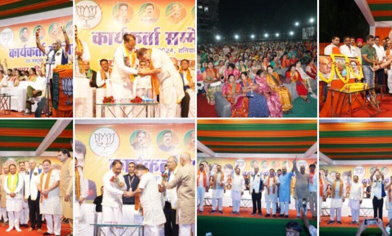 The Narad News 24,,,,,रायपुर। भारतीय जनता पार्टी रायपुर दक्षिण में होने वाले विधानसभा उपचुनाव में इतिहास रचने के लिए लगातार कार्य कर रही है। इसी के परिप्रेक्ष्य में आज रायपुर दक्षिण विधानसभा के कार्यकर्ता सम्मेलन में मुख्यमंत्री विष्णुदेव साय, सांसद बृजमोहन अग्रवाल, मुख्य प्रवक्ता एवं विधायक अजय चंद्राकर, शिवरतन शर्मा सहित सभी भाजपा पदाधिकारियों ने भाजपा प्रत्याशी सुनील सोनी के विशाल जीत के लिए जनता से आशीर्वाद मांगा।