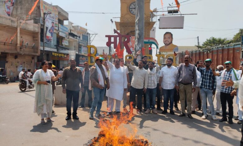 कांग्रेस ने प्रदेश के सभी जिलों में ईडी का पुतला फूंका