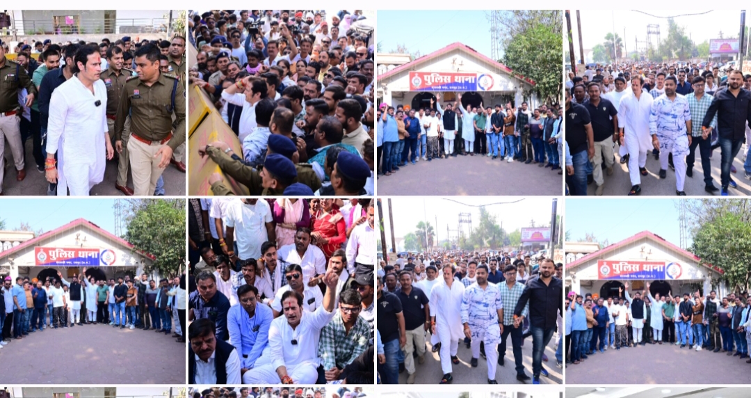सत्ता के दबाव में पुलिस द्वारा छात्रो एवं युवा कांगे्रस के साथियो के उपर किये गए एफ आई आर को लेकर कांग्रेस पार्टी द्वारा किया गया सरस्वती थाने का घेराव,, पूर्व विधायक विकास उपाध्याय