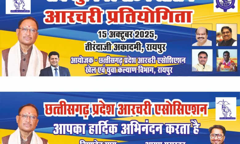The Narad News 24,,,, रायपुर में अत्यत गर्व एवं हर्ष का विषय है कि आगामी 15 अक्टूबर 2025 को रायपुर में 25वां सब जूनियर बालक-बालिका प्रतियोगिता का भव्य आयोजन रायपुर में किया जा रहा है इस भव्य प्रतियोगिता में राष्ट्रीय एवं प्रदेश स्तर के तीरंदाज जिले के कोने-कोने से सम्मिलित होंगे। आयुष मुरारका ने बताया हमारे जिले हेतु अत्यंत हर्ष एवं गौरव की बात है। इस भव्य आयोजन में आपकी उपस्थिति, सहयोग, मार्गदर्शन हमारे लिए चिरस्मरणीय बनाए रखेगी। इस पत्र को हमारा आमंत्रण पत्र स्वीकार कर अवश्य पधारे।