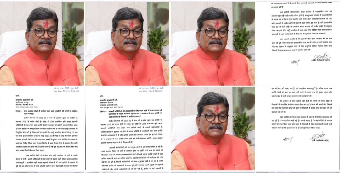 The Narad News 24,,,,रायपुर, 14 नवंबर 2025।* छत्तीसगढ़ विधानसभा नेता प्रतिपक्ष डॉ. चरणदास महंत ने प्रदेश़ के मुख्यमंत्री को दो अलग अलग पत्रो के माध्यम से कहा है कि, खरीफ विपणन वर्ष 2025-26 के धान की समर्थन मूल्य पर खरीदी 15 नवम्बर 2025 से प्रारंभ होनी है। परंतु पूरे प्रदेश में 2058 प्राथमिक कृषि साख सहकारी समितियों और 2739 धान खरीदी केन्द्रों के हजारों कर्मचारियों के अनिश्चितकालीन हड़ताल पर होने के कारण समिति के कार्यालयों तथा धान खरीदी केन्द्रों में ताले लटक रहे हैं और खरीदी प्रारंभ होने में मात्र 1 दिन शेष है। ऐसी स्थिति में 15 नवम्बर से धान खरीदी प्रक्रिया सुचारू रूप से प्रारंभ होने की कोई संभावना नही दिखायी पड़ती है। राज्य सरकार हड़ताल समाप्त करवाने में भी विफल रही है।