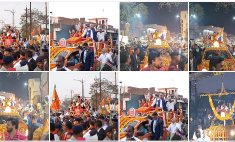 नगर निगम चुनाव में मुख्यमंत्री विष्णुदेव का विशाल रोड शो मीनल चौबे के पक्ष में प्रचार सांसद विधायक