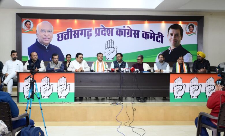 पत्रकारवार्ता में पूर्व मंत्री डॉ. शिवकुमार डहरिया, प्रभारी महामंत्री मलकीत सिंह गैदू, प्रदेश कांग्रेस संचार विभाग अध्यक्ष सुशील आनंद शुक्ला, डॉ. प्रेमसाय सिंह टेकाम, शैलेश नितिन त्रिवेदी, प्रभारी महामंत्री सकलेन कामदार, पंकज शर्मा, वरिष्ठ प्रवक्ता धनंजय सिंह ठाकुर, घनश्याम राजू तिवारी, सुरेन्द्र वर्मा, प्रवक्ता वंदना राजपूत, अजय गंगवानी, सत्यप्रकाश सिंह, सौरभ साहू, रिषभ चंद्राकर उपस्थित थे।