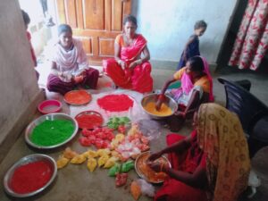 स्व सहायता समूह की महिलाएं बना रही होली के लिए फूलों और सब्जियों से हर्बल गुलाल