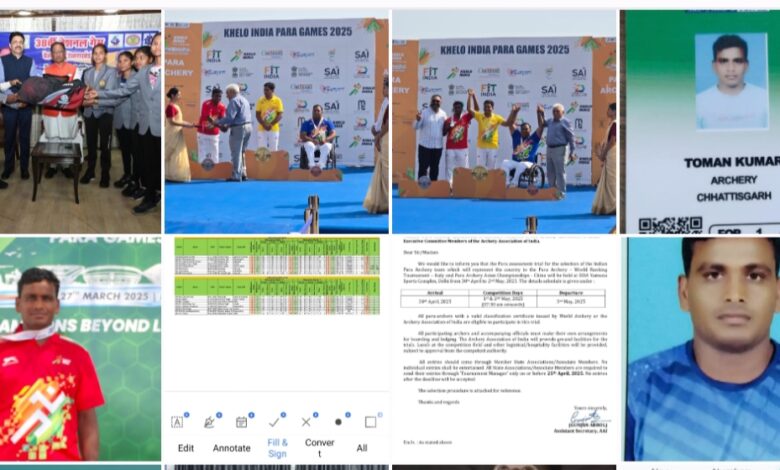 The Narad News 24,,,, रायपुर छ ग , के पैरा तीरंदाज पहले बार इडली और चीन के लिए चयनित