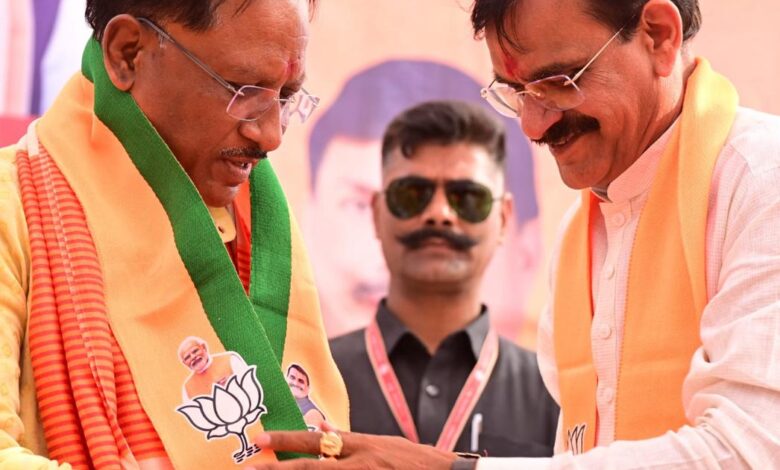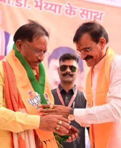 एमपी भाजपा प्रदेश अध्यक्ष और खजुराहो लोकसभा से भाजपा प्रत्याशी वीडी शर्मा के प्रचार में पहुंचे सीएम साय ने ली चुटकी