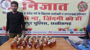The Narad News 24,,,,,, रायपुर में पुलिस अधीक्षक श्री संतोष सिंह के दिशा निर्देश पर एवं अतिरिक्त पुलिस अधीक्षक(ग्रामीण) र्कितन राठौर के मार्गदर्शन में तथा नगर पुलिस अधीक्षक (विधानसभा) केशरी नंदन नायक के पर्यवेक्षण में थाना प्रभारी तिल्दा नेवरा जितेन्द्र एसैया के नेतृत्व में आबकारी एक्ट में गिरफ्तार किया गया है।