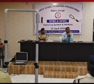 एच०एच०एम०डी०/डी०एफ०एम०डी० के संचालन का प्रशिक्षण रायपुर रेंज के जिला-रायपुर, गरियाबंद, धमतरी, महासमुंद एवं बलौदाबाजार-भाटापारा के पुलिस कर्मचारियों को सुरक्षा उपकरण एच०एच०एम०डी०/डी०एफ०एम०डी० संचालन के संबंध में प्रशिक्षण श्री जी०एन० प्रधान, उप पुलिस अधीक्षक, विशेष शाखा पुलिस मुख्यालय रायपुर, श्री वी०पी० सिंह, उप निरीक्षक, प्र०आर० दिनेश राठौर, सुमीत अग्निहोत्री वि०शा० पुलिस मुख्यालय रायपुर व बीडीएस टीम पुलिस मुख्यालय द्वारा दिया गया।
