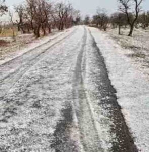 मौसम का मिजाज बदला बर्फ की चादर से ढकी सड़कें छत्तीसगढ़ में आंधी-बारिश के साथ जमकर गिरे ओले,